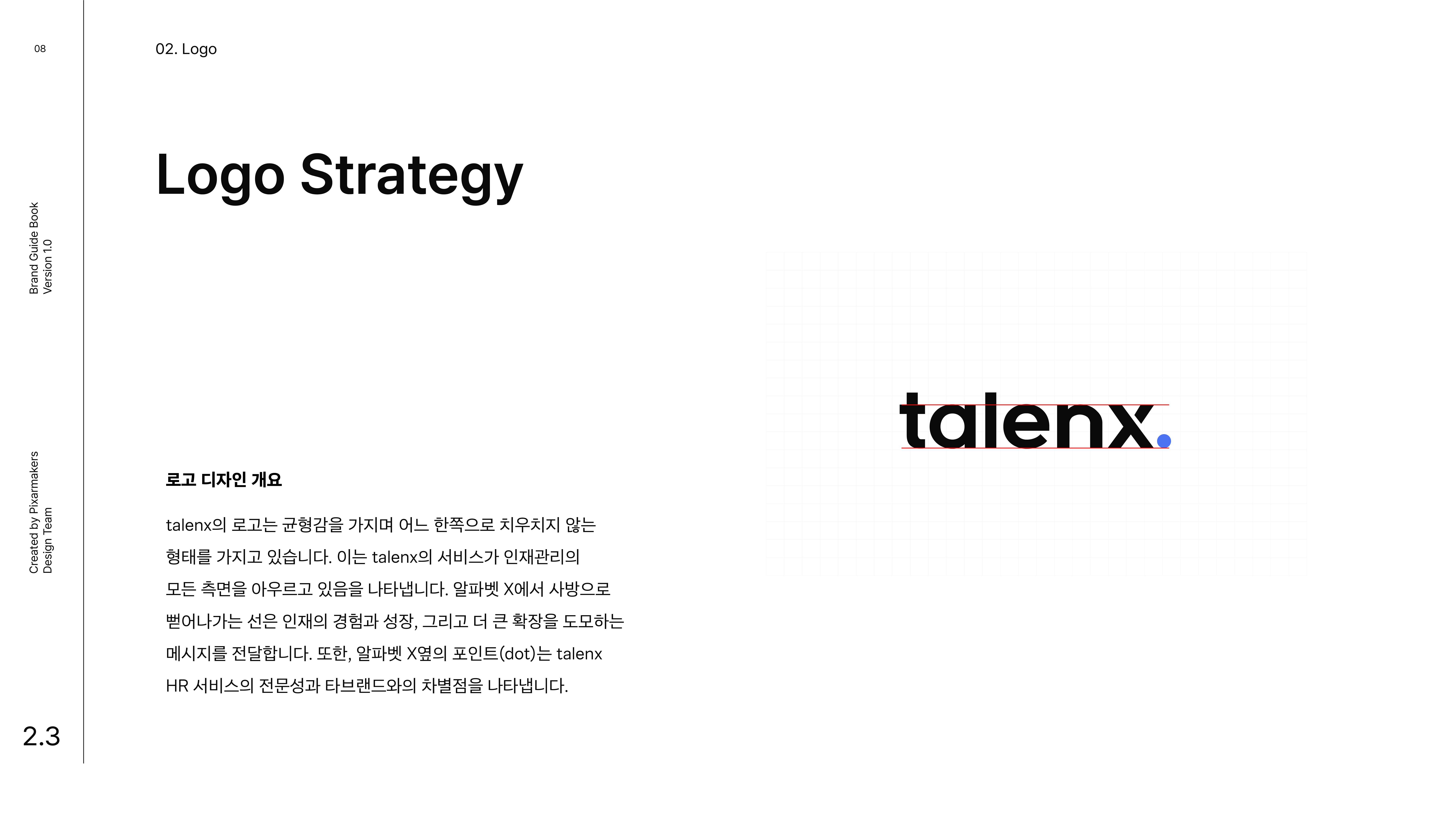 HR 브랜드 talenx의 브랜딩 및 가이드 작업 진행하였습니다.
